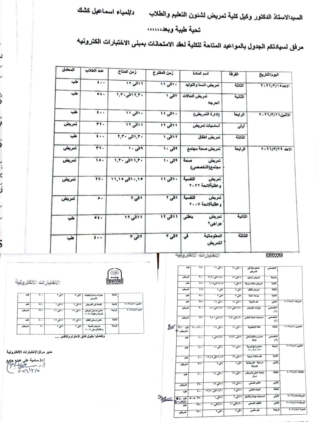 بداية امتحانات الميدتيرم للكلية والبرنامج التخصصى بالفصل الدراسى الثانى يوم الاحد القادم ١٥-٣ /2026