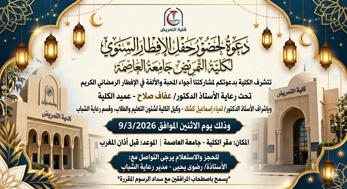 دعوة لحضور يوم الإفطار الجماعي بكلية التمريض – جامعة العاصمة 🌙✨